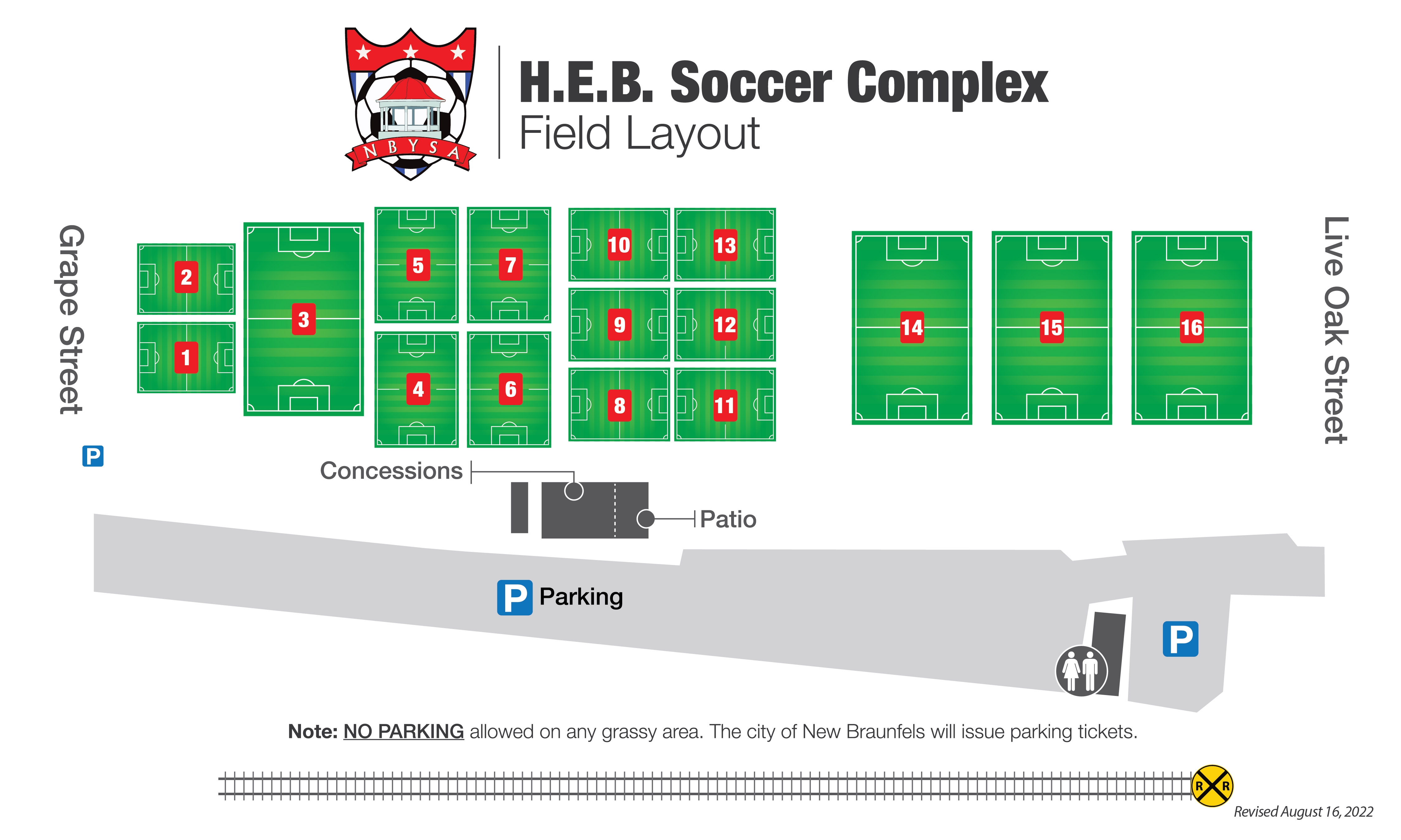 Please be sure to check the field status box below during inclement weather. Parking at the HEB fields has been increased and NB Parks has asked us to make sure that nobody is parking on any grassy area. This includes the area within the park and along Live Oak Street. NB PD will issue parking tickets for violators. Thank You for your cooperation.